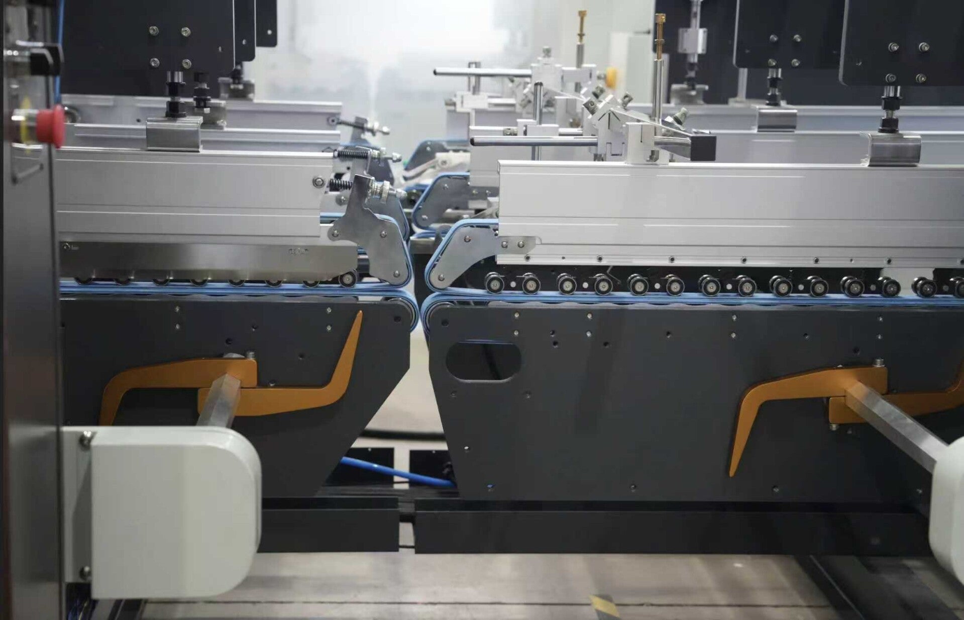 The EF series machines feature a modular structure that separates the driving and functional modules, enabling powerful output and user-friendly operation through a graphical Human-Machine Interface (HMI), Programmable Logic Controller (PLC) control, online diagnostics, and a multi-function remote controller. The independent motor driving system ensures smooth and quiet operation. Additionally, the carrier upper belts are maintained under stable and easy pressure control through independent pneumatic devices.