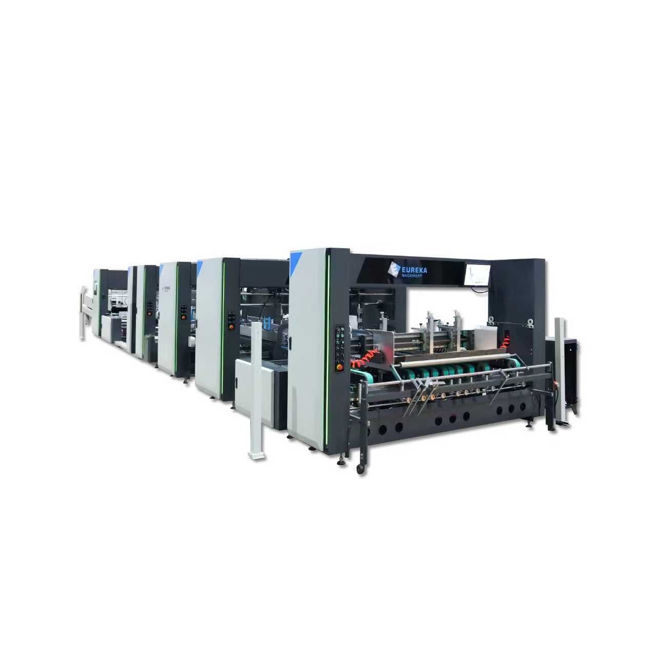 The EF series folder gluer machines are versatile and primarily designed for medium-sized cardboard packages weighing between 300g and 800g. They can handle corrugated cardboard with thicknesses ranging from 1mm to 10mm and utilize various facers, including E, C, B, A, AB, and EB. These machines are capable of producing two or four folds, crash-locking the bottom, creating four or six-corner boxes, and printing on slotted cartons.